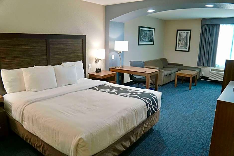 The spacious suite provides air conditioning, a tea and coffee maker, as well as a private bathroom featuring a walk-in shower and a bath. The suite features tiled floors, a seating area with a flat-screen TV with cable channels, a wardrobe, a sofa, as well as a carpeted floor.